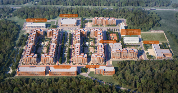«Клюквенный» - это жилой комплекс на 2300 жителей. ЖК имеет собственную инфраструктуру, состоящую из социально значимых объектов: